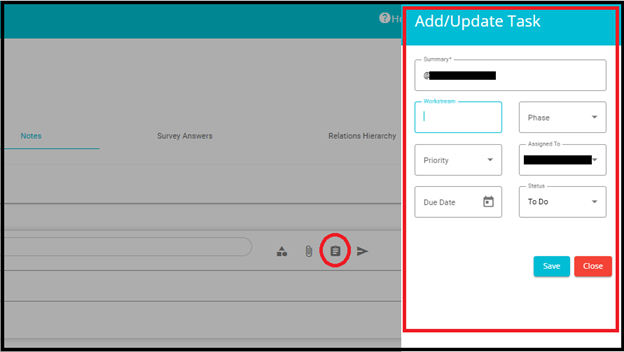 b. After making changes, click Save to update the task or Close to exit without saving.