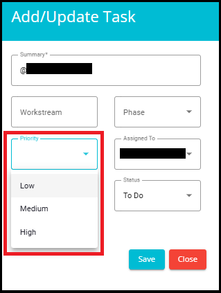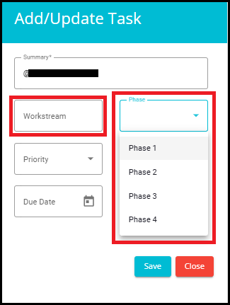 • Phase: From the drop-down menu, select the Phase that the task is in.