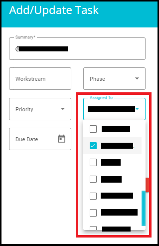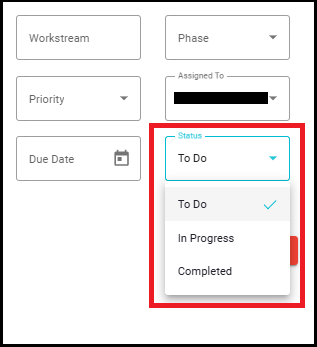 a. View and modify the Summary, Workstream, Phase, Priority, Assigned To, Due Date, and Status .