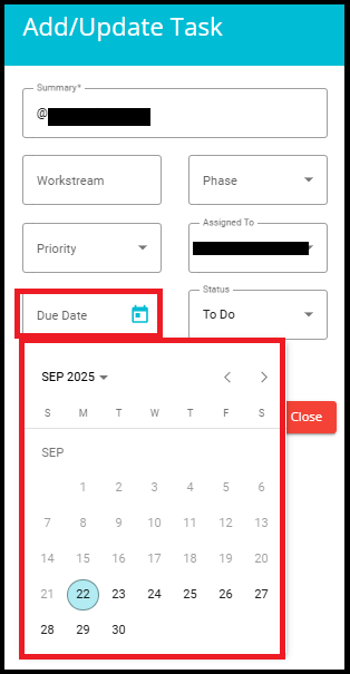• Due Date: Set the date by which the task is to be completed.
