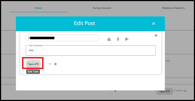 1. Click on the Task ID Chip (e.g., Task 479) visible within the note interface.