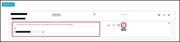 1. Once the task has been configured, click Save or click on Send icon to post the Note.