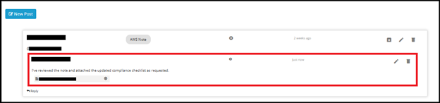 To reply to a Note/Task as a tagged user, click on the Reply button located below the note or task. This opens a comment input box.