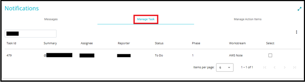 1. To manage notes that are linked to tasks, go to the Manage Task tab under the Notifications section.