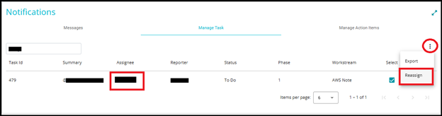 • Locate the task you want to reassign (e.g., Task ID: 479).