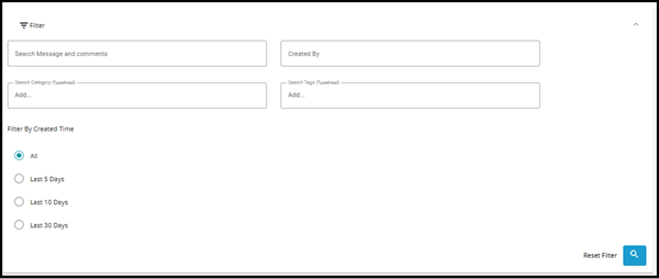 1. Here you can search for Notes by their content/message, t he name of the user it was created by its' category or its Tags. Notes can also be filtered by time.