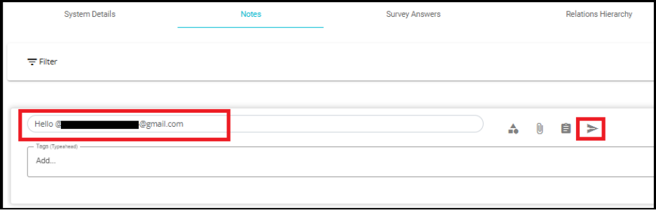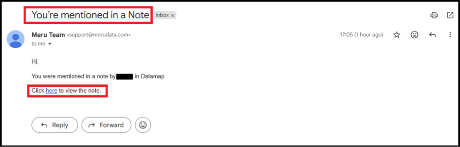 Additionally, the tagged user will receive an email notification stating that they were mentioned in a note, along with a link to view the note.