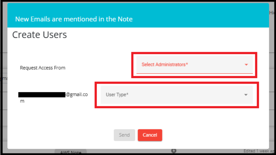 • When the administrator clicks the link in the email, they are redirected to the Edit User Note window.