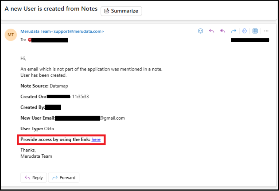 • Request Access From: Displays the email address of the new user.