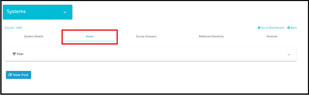 • Here, notes can be made against different Systems.