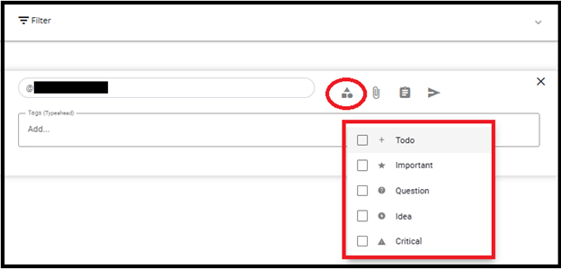 • The checkbox for that user is checked by default because the user was tagged. This behavior occurs only if the tagged user already exists in DGT.