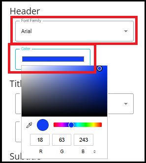 • Open the drop-down menu under the 'Font Family' option of the sub-header tab.