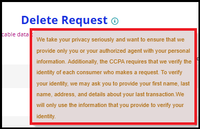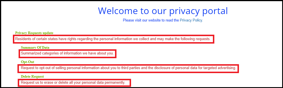 Note: The changes made here are reflected in the entire text displayed on the privacy request forms.