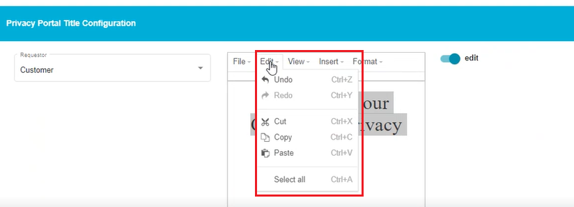 The privacy portal's title (header displayed on the welcome screen) can be configured in this section. For multiple requestors, you can differentiate the title by changing the requestor type.