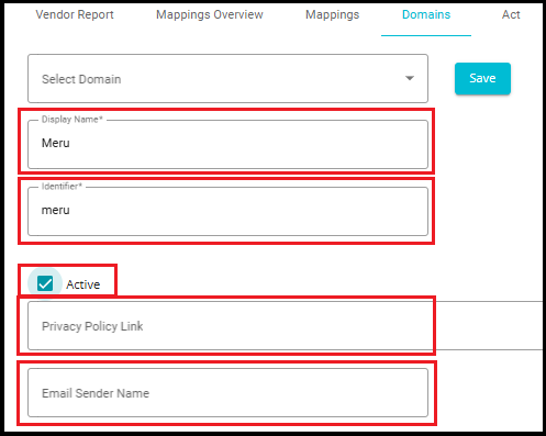 Note: Display Name and Identifier cannot be left blank when configuring a domain.