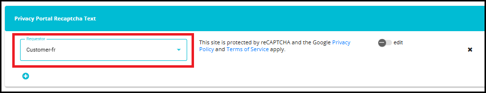 • Click on the "+" icon to configure the Recaptcha text that will appear on the Privacy Portal Welcome Screen for the selected requestor type.