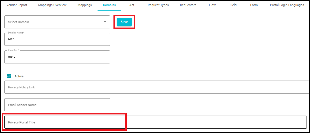 Note: In case of not defining any variables under the privacy portal links and a variable is defined in the request form's description in the Form Configuration screen, the defined variable takes the default link given by the user when creating the domain.