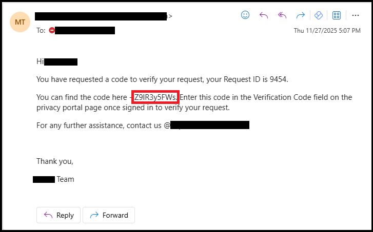 • Verify via Privacy Portal