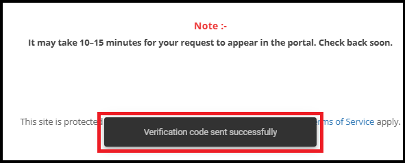 • After clicking Generate Code, a message appears at the bottom: "Verification code sent successfully".