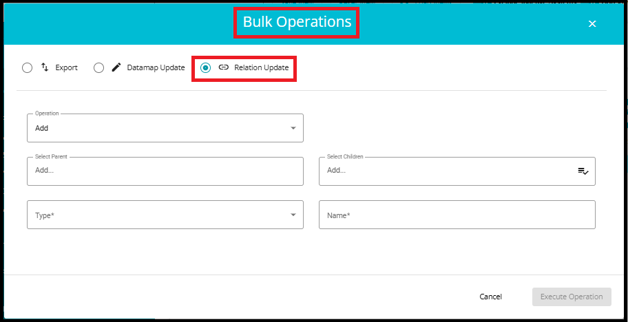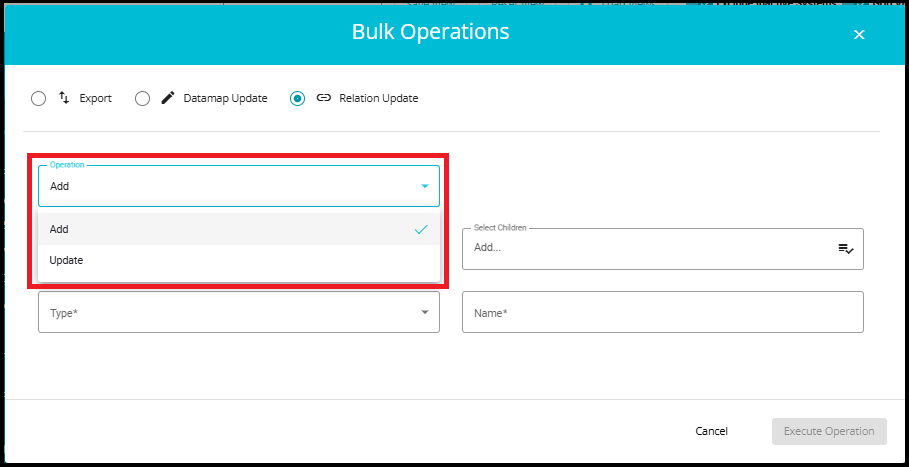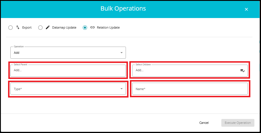 - Operation: Choose Add to create a new relation or update to modify an existing one.