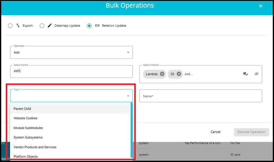 7.Click on the Execute Operation button to apply the relation changes for selected systems.