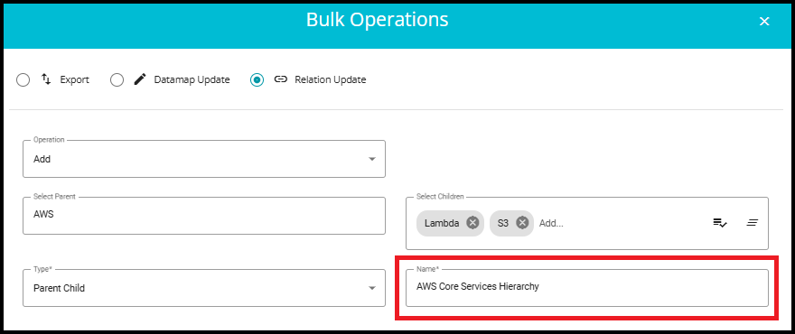 This field will show the name of the relation you previously created (e.g., AWS Core Services Hierarchy).