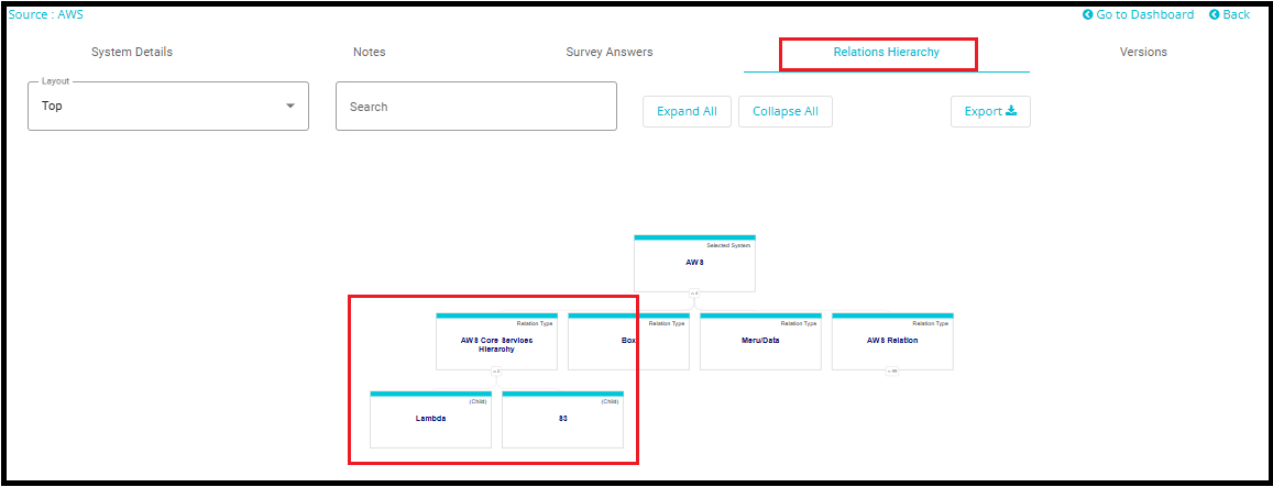 - In the Systems tab, locate and click on the system name (e.g., AWS) that was used as the Parent in your relation.
