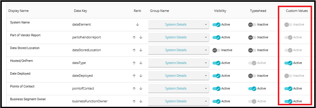 Visibility: Fields can be hidden from the System Details page if needed by making the field Inactive here.