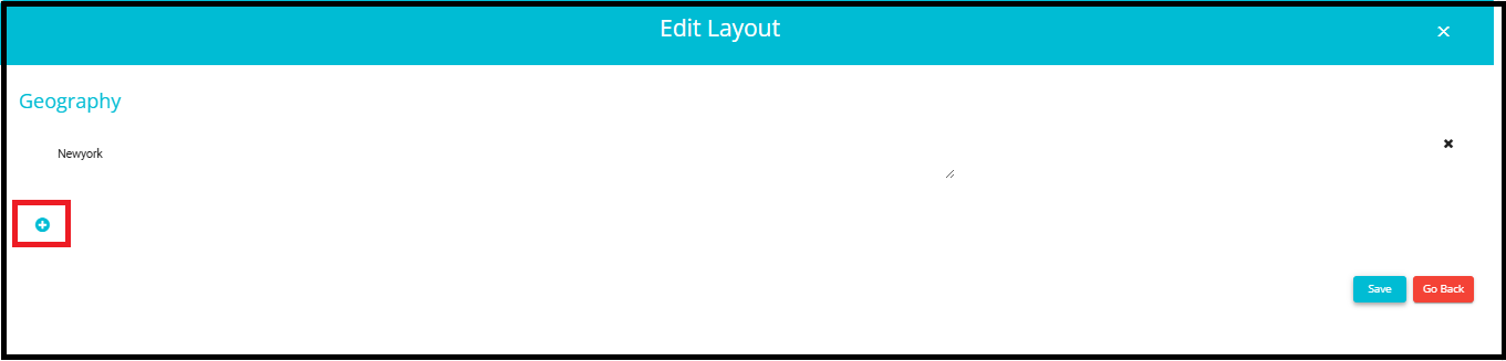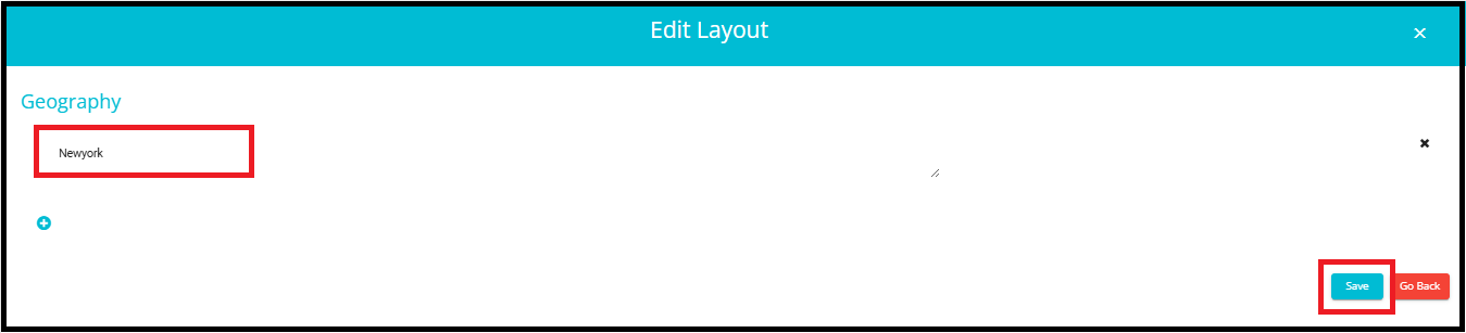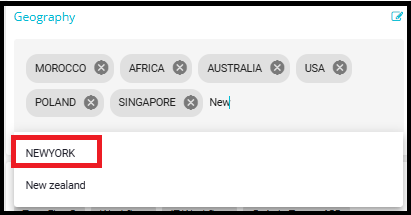 Example: In the Geography section, we are adding 'Newyork' using the Add/Update button. After typing in the value and clicking Save,'Newyork' will be added to the drop-down menu.